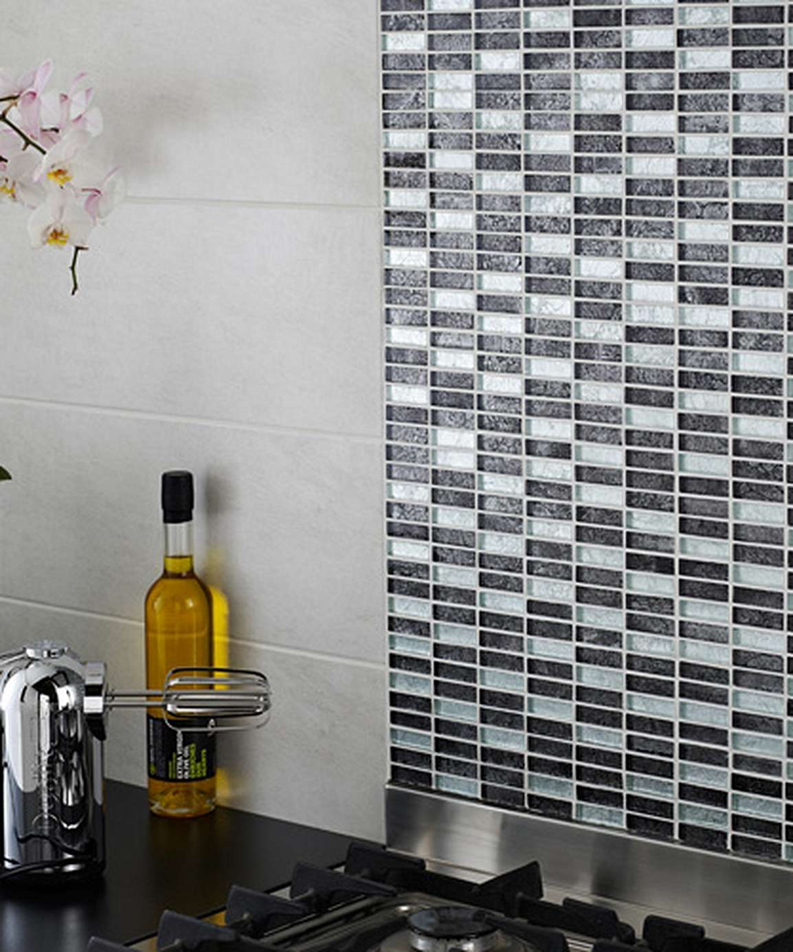 La mosaïque de verre, en intérieur, résiste aux variations de température. Elle peut donc être utilisée pour la décoration de cuisines, de cheminées et de poêles, ainsi qu'en extérieur pour la finition des façades et la pose de sols décoratifs sur les terrasses et patios. Une large palette de couleurs est obtenue grâce à l'ajout de colorants lors de la fabrication (cadmium, sélénium, nacre, aventurine).