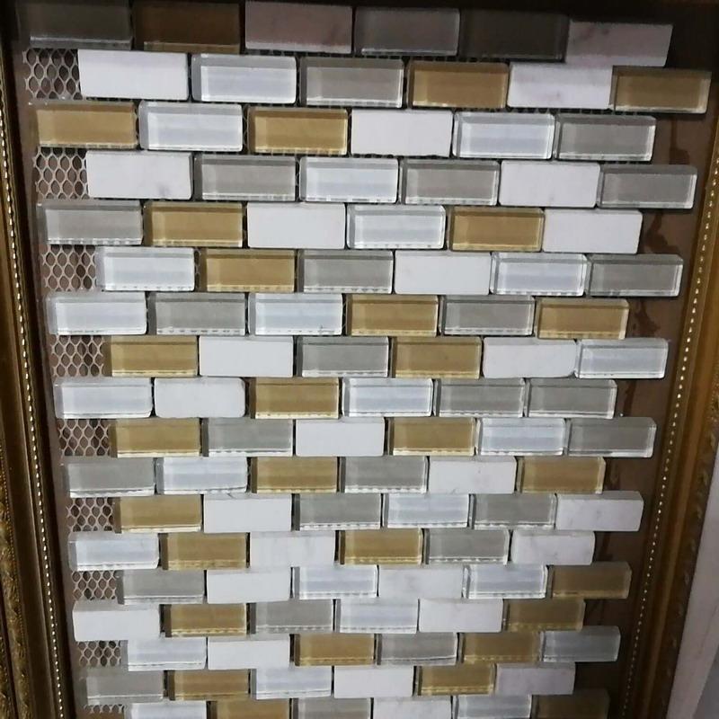 Mosaïque de verre classique linéaire gris blanc beige